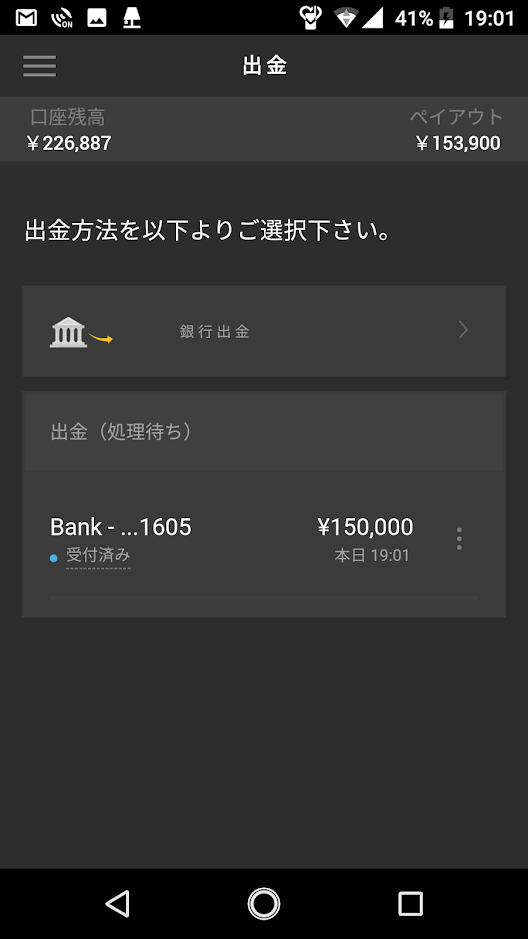 ここらへんで利確??出金申請を一部しようと決め最期の大勝負に勝ったので15万円を抜き取りました